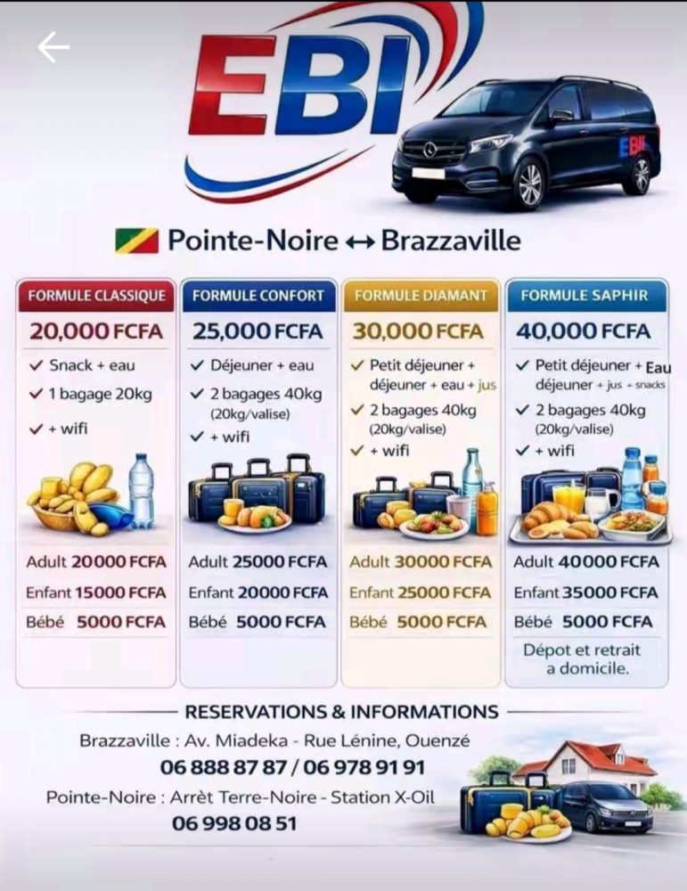 Il existe plusieurs moyens de transport pour se rendre à Pointe-noire: