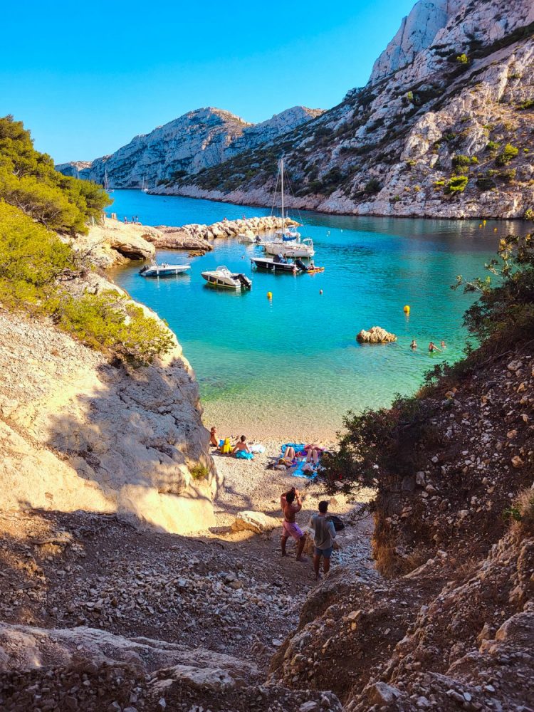 En effectuant des recherches sur les lieux insolites de la ville, je suis tombée sur un article évoquant les calanques. Intriguée par cet endroit qui semblait correspondre à mes envies, j’ai décidé d’organiser une randonnée en montagne avec les enfants afin de rejoindre une magnifique plage.
